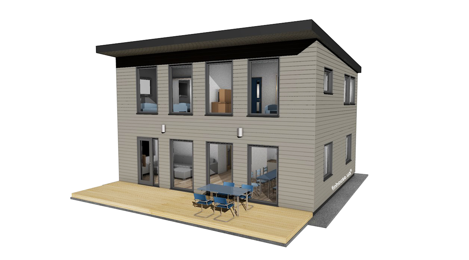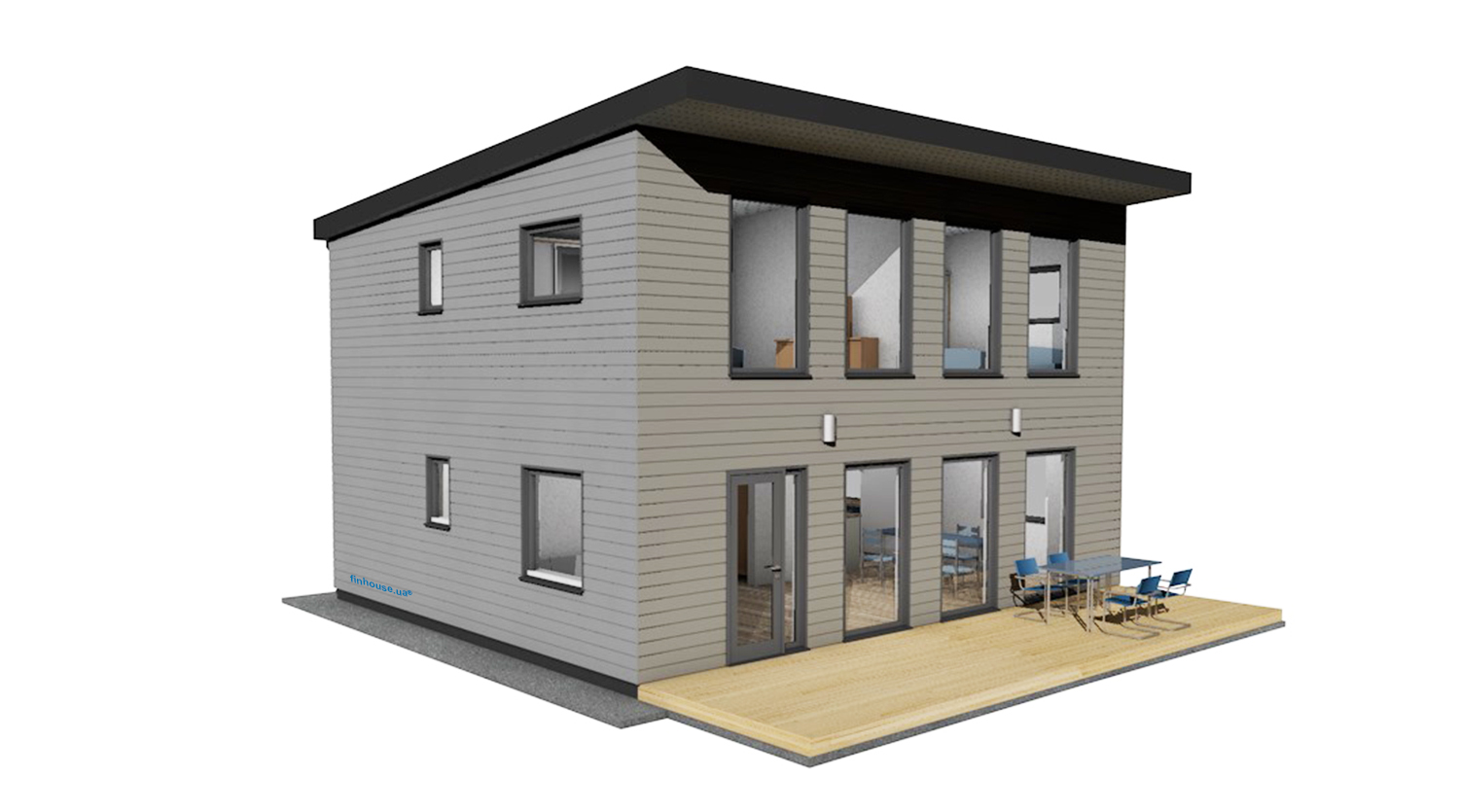 Arctic_120 Лаконічний проект будинку для проживання родини із 4 – 6 чоловік. Двоповерхове рішення розділяє будинок на простору зону загального користування на першому поверсі, та зону відпочинку, з трьох просторих кімнат, на другому повноцінного поверху.